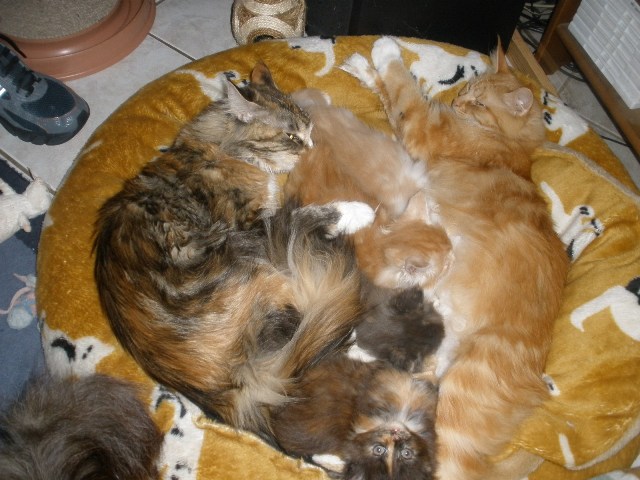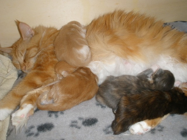 Unsere 4 Christkindchen, Mama und Kitten gehts sehr gut. Alle nehmen schön zu und quängeln überhaupt nicht, lauter brave,zufriedene Babys. Mehr in den nächsten Tagen und Wochen,die Seite wird laufend aktuallisiert.
